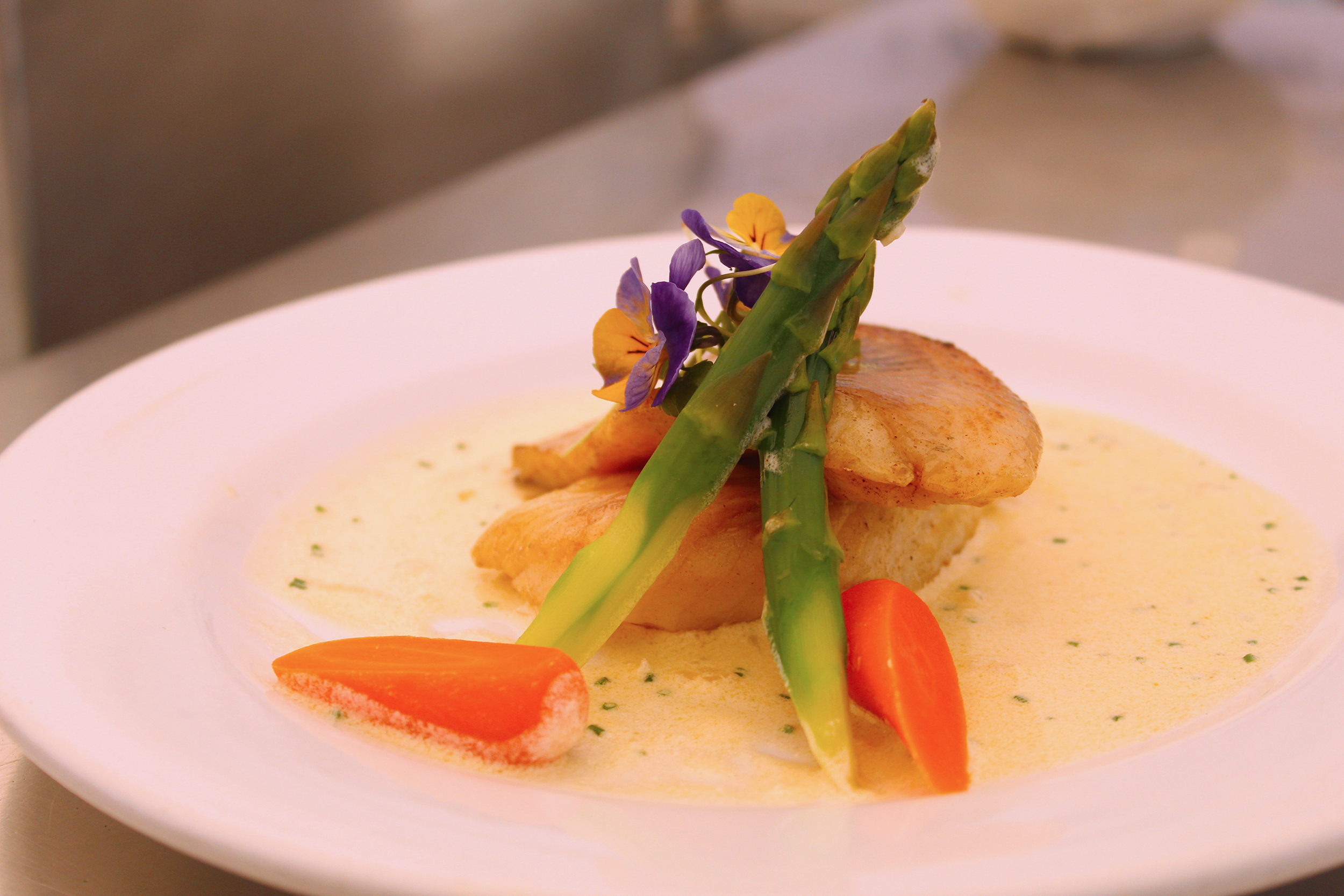 Los siguientes participantes en tomar los utensilios y deleitarnos con su cocina fueron los chefs Hermenegildo Gómez y Antonio Durazo Sotelo, quienes al mismo tiempo cocinaron la Tilapia en salsa de cebollín y Tiradito de la Quebrada, respectivamente. Ambos tomaron sus estaciones mientras explicaban el proceso de elaboración de los platillos, resultando en dos exquisitas presentaciones: La Tilapia en salsa de cebollín presentada en un espejo de salsa y acompañado con una guarnición de espárragos y zanahorias al vapor; y el Tiradito de la Quebrada, una costra de tilapia montada sobre un espejo de salsa de agua chile.