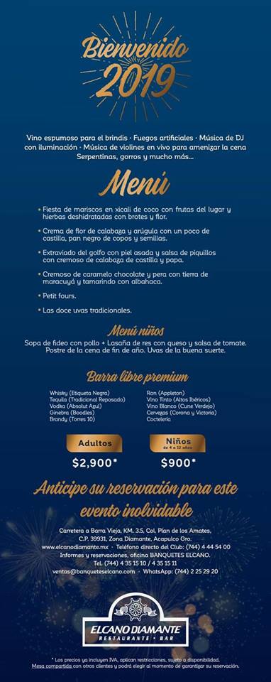 Ya se están dejando ver las opciones que algunos lugares ofrecen para disfrutar la noche para despedir el año viejo y recibir al año nuevo. Afortunadamente en Acapulco siempre contamos con distintas posibilidades para todos los bolsillos y gustos.