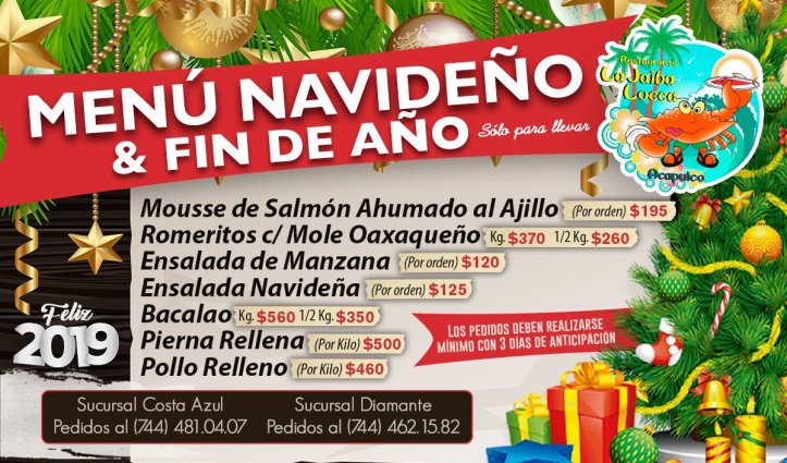 Tanto para Navidad como para el fin de año, el menú que ofrece La Jaiba Locca es muy tentador. Los precios accesibles comparado con la calidad de su comida. Otra buena opción para toda la familia.