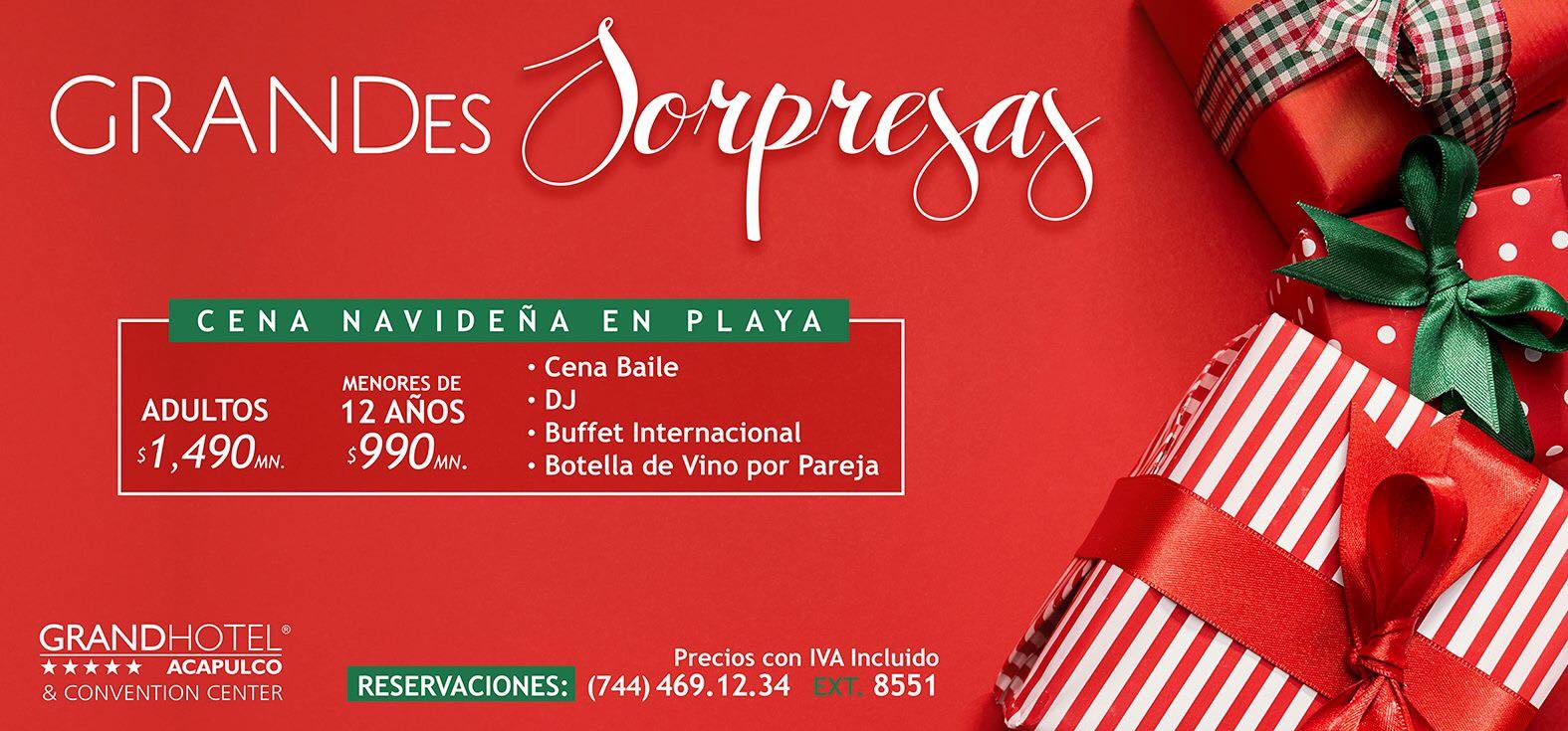 El Grand Hotel conoce bien a sus huéspedes y los agasaja en Navidad y Año nuevo. Si estás buscando algo que te incluya hospedaje además de una gran cena, ¡esta es una gran opción!