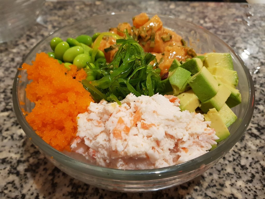 El Poke es un platillo tradicional en Hawaii, forma parte común de la dieta de los hawaianos. La historia de este platillo se remonta la epoca pre-colonial de la Polinesia y su nombre significa «cortar transversalmente en trozos» en hawaiano. Los primero hawaianos pescaban para alimentarse y la pesca del día era la perfecta forma de sustento, por tener una relación directa con sus tradiciones y sobre todo por la frescura del pescado. El poke surge de una primera versión de pescado cortado en rebanadas pequeñas, aderezado con un poco de sal y un poco de ogo (alga marinas frescas). Eventualmente, en los años 70s el chef Sam Choy y el movimiento de la cocina regional hawaiana, pusieron de moda el pescado crudo otra vez y con ello el poke comenzó su lento avanzar en nuestras dietas, hasta el día de hoy.