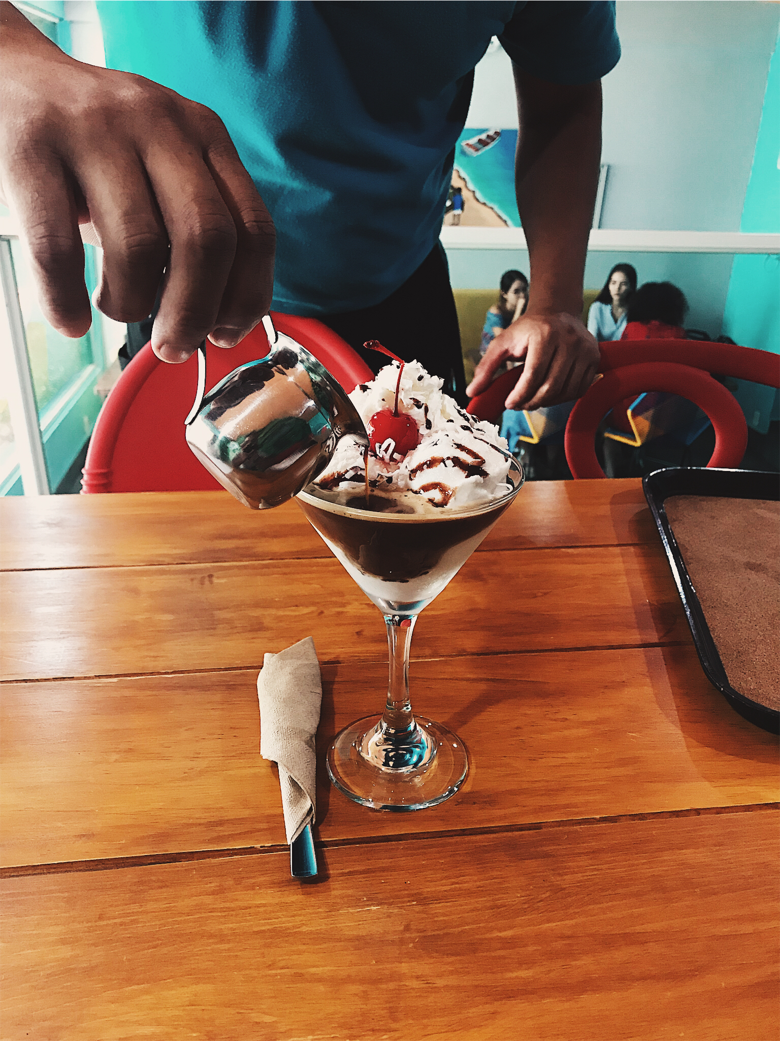 Por recomendación de Emanuel, tuvimos la oportunidad de probar el Affogato Kayroma, quien en su muy tentador aspecto esconde mucha magia y encanto. Tradicionalmente, el affogato es una bebida a base de café espresso caliente que es vertido sobre helado de vainilla, pero en esta versión mejorada por la casa, se sustituye al helado por la nieve de coco artesanal y que desde la primer cucharada se tiene un sabor muy familiar y reconocible en los sabores que encontramos en las calles de Acapulco, en las garrafas de nieve en un día caluroso.