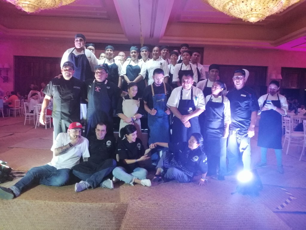 En el marco de las actividades de Oficios Culinarios, se llevó a cabo la Cena de Gala, que estuvo bajo las manos y los sabores de los 10 chefs invitados a la mesa redonda de Oficio Cocinero, asegurando con ello una experiencia extrasensorial y cargada de sabores delicados, explosivos y deliciosos. Durante esta cena que constó de 9 tiempos, pudimos degustar una chalupita de atún que estuvo a cargo del chef Lalo Palazuelos; una jaiba con mayonesa de chile amashito y piña asada al carbón en tostón de plátano macho por la chef Gaby Ruiz; cebolla al carbón con hongos de lluvia au jus y molleja crujiente por el chef Eduardo Morali; piquillo glaseado relleno de bacalao y su pipil por el chef Juantxo Sánchez ; mixiote de rabo y aguacate lío por el chef Jonatán Gómez; una lengua de res por el chef Aquiles Chávez; cegueza con cordero prensado por la chef Celia Florián; suspiro de novia por el chef Ricardo Muñoz Zurita; y una muselina de cacao, café y piñón por el chef Mikel Alonso.