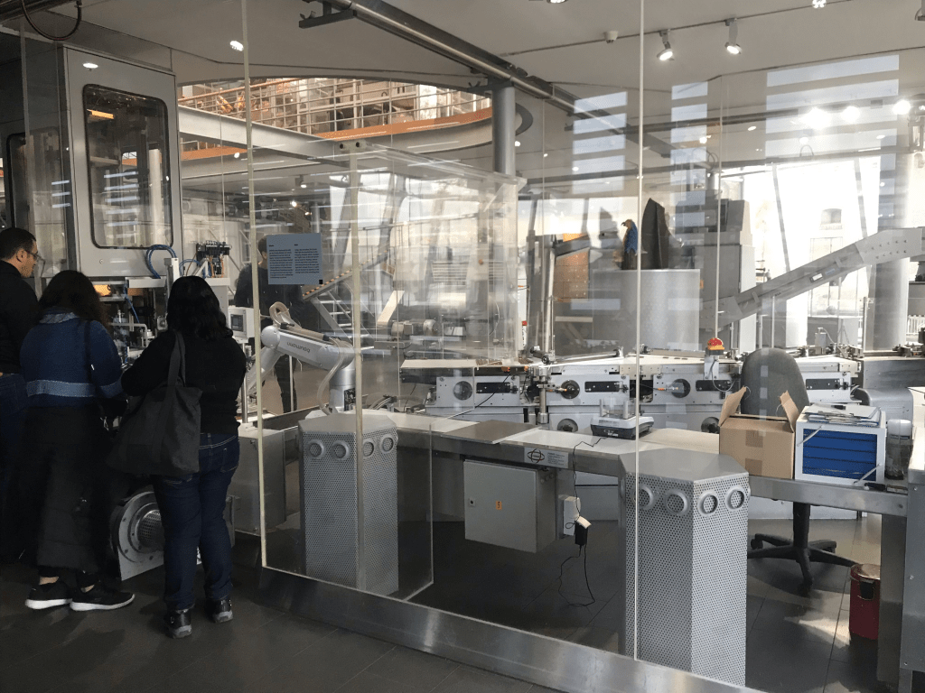 En la S7, también llamada la Fábrica Transparente de Chocolate, brinda la oportunidad a los visitantes de conocer el proceso de la producción de las barras de chocolate en tiempo real, siguiendo el viaje del cacao desde la máquina para tostar los granos de cacao hasta terminar como una barra de chocolate empaquetada. En este lugar, el olor a chocolate es envolvente, su dulzor genera una experiencia onírica que es acompañada de la adictiva trayectoria de las pequeñas barritas circulando por las bandas de la cadena de producción. En este proceso se observa el chocolate siendo convertido en un líquido espeso y de color café que es vertido sobre moldes que dan su forma característica, terminando con la parte de envoltura y finalmente empaquetado de las barras terminadas. La experiencia de poder observar cada uno de los pasos por los que atraviesa el chocolate hasta convertirse en un producto terminado es completamente adictivo y fascinante, pues la producción en cadena y su viaje acelerado nos permite hipnotizarnos con las bandas industriales.