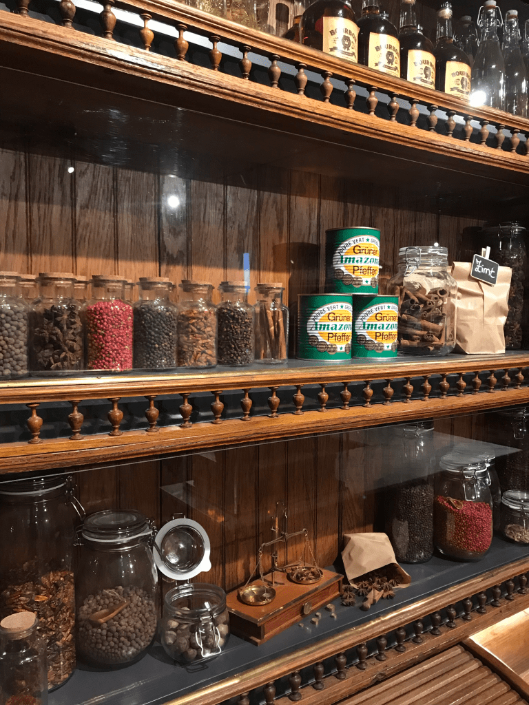 Antes de salir del museo, se encuentra una tienda que cuenta con una gran variedad de chocolates, de diferentes sabores, tamaños y precios, que oscilan entre los 0,89€ hasta los 150€, teniendo la posibilidad de escoger entre cajas, barras o confeccionar tus propias bolsas con chocolates a granel. También existe la posibilidad visitar la cafetería del museo que cuenta con una panorámica del río Rin para degustar un chocolate caliente, un Käsekuchen (pastel de queso alemán), Selva Negra, entre otros postres y sándwiches salados.