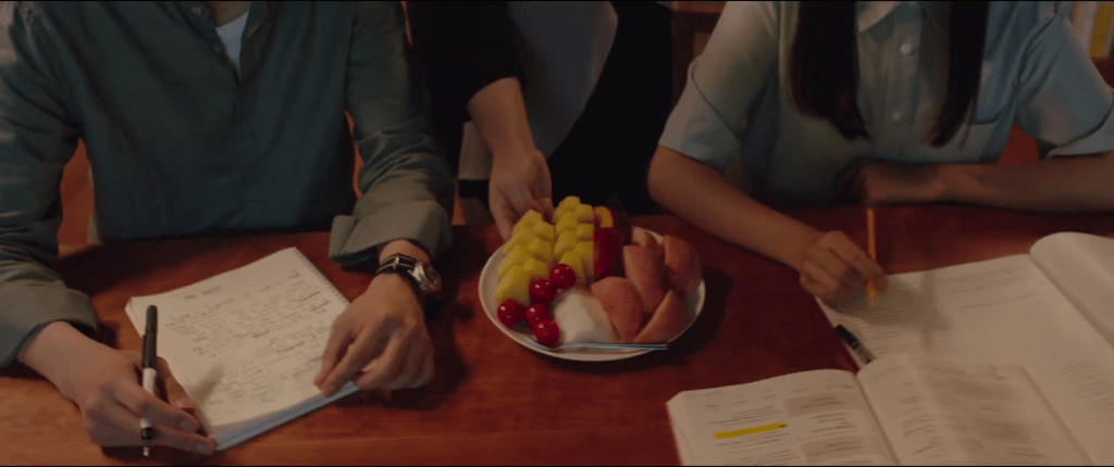 En las primeras escenas, cuando «Kevin» llega a la casa para trabajar como un asesor en la materia de inglés del hijo menor de los Park, podemos ver como Moon-gwang, la ama de llaves ofrece un platón de frutas rebanadas, de entre ellas melón y uvas. El melón en varias culturas asiáticas posee un significado muy cercano al lujo, especialmente en Corea de Sur, donde dos de los Tesoros Nacionales son artefactos en forma de melón. Además, universalmente las uvas han sido vistas como un símbolo de abundancia en las cornucopias del arte occidental. No es raro verlo en una escena donde el excentricismo, el occidentalismo y la riqueza de la familia Park se resalta.