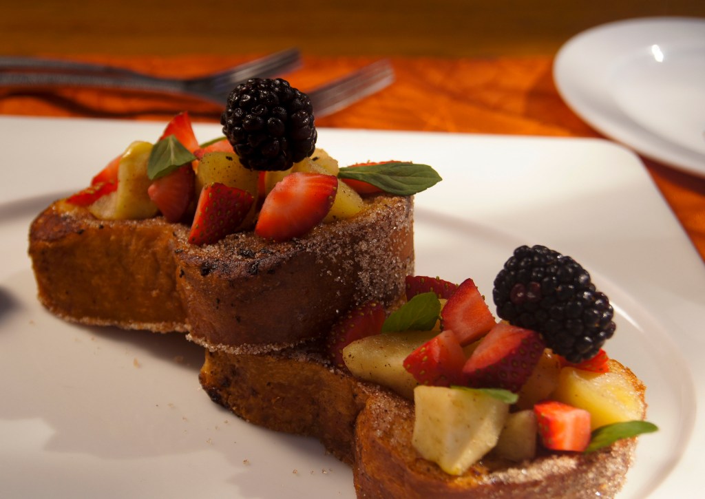 De igual manera, hay tres platillos dulces a elegir: waffles, hot cakes y pan francés. Si bien los waffles son nuestros favoritos, el pan francés no tiene comparación en este lugar: su mezcla de ingredientes y el toque de las frutas frescas lo hacen un plato único que te harán desear probarlo una vez más.