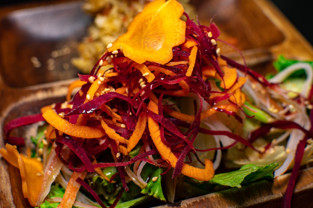 Para empezar, la ensalada mixta es una opción para abrir el apetito, la cual se sirve la lechuga acompañada de betabel, zanahoria, pepino y una salsa agridulce con ajonjolí que le da su toque muy especial, transformándola de ser una simple ensalada de vegetales a un platillo sustancioso que es muy agradable al paladar; su toque secreto es definitivamente esa salsa.