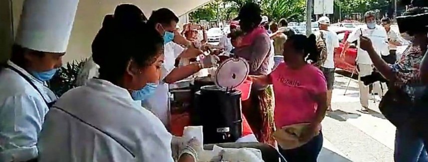 Por iniciativa de René Ramírez, gerente de dicho hotel, todos los colaboradores se integraron como equipo para solidarizarse con los que más necesitan y salieron a la calle a ofrecer comida.