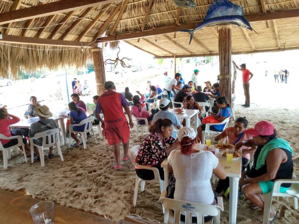 Diariamente reciben un promedio de 60 personas que acuden desde distintas playas del puerto. Algunas familias caminan desde Caleta para disfrutar un plato caliente y la calidez de quien les extiende la mano en estos momentos. Los platillos que han preparado varían; desde picadillo, caldo de pescado, pescado en salsa verde, arroz con frijoles, queso guisado, salchicha a la mexicana, papa guisada, picadas, caldo de camarón, entre otros.