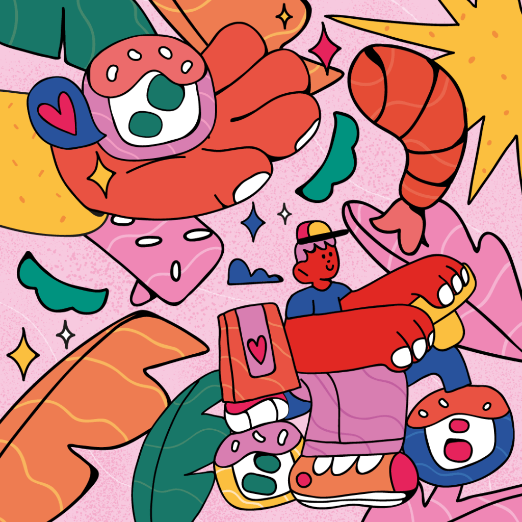 Para la ilustración de esta campaña que consiste en la decoración de las bolsas de compra en donde son entregados los pedidos y el embalaje de los palillos, así como cuatro diferentes stickers que son introducidos dentro de las bolsas de pedidos, estuvieron a cargo de la mano de Fer Oms, artista acapulqueña que cuenta con experiencia y un gran talento dentro de la ilustración digital.