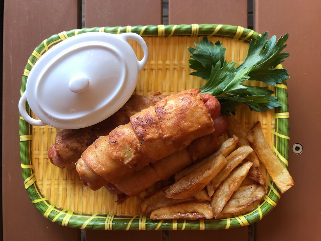 A grandes rasgos, los Palmitos son salchichas envueltas en una pasta crujiente, parecida al hojaldre, que es complementada en su interior por otros ingredientes, dependiendo el tipo de palmito que pidas, pues puedes elegir entre el Quebrada, que incluye queso manchego y pepperoni; el Sinfonía, que va con jamón y piña; y el Papagayo, al cual se le agrega queso manchego. Cualquiera de estas tres opciones son perfectas para poder disfrutar este platillo que gracias a su forma de cocción, te son entregados en su punto para ser consumidos super crujientes. Puedes acompañar tus palmitos con un aderezo de tu preferencia, aunque nosotros te recomendamos pedirlos con salsa BBQ o queso para nachos, pues suman un sabor único y agradable a cualquier paladar.