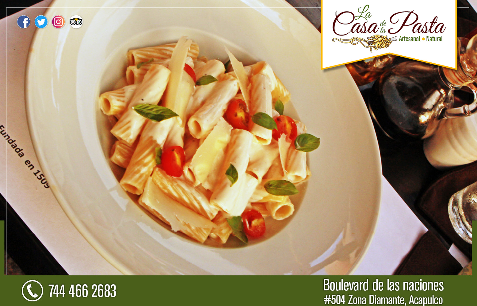 Además en “La Casa de la Pasta” podrás encontrar otra gran variedad de platillos como sus pizzas artesanales, su pan casero y postres únicos y exquisitos.