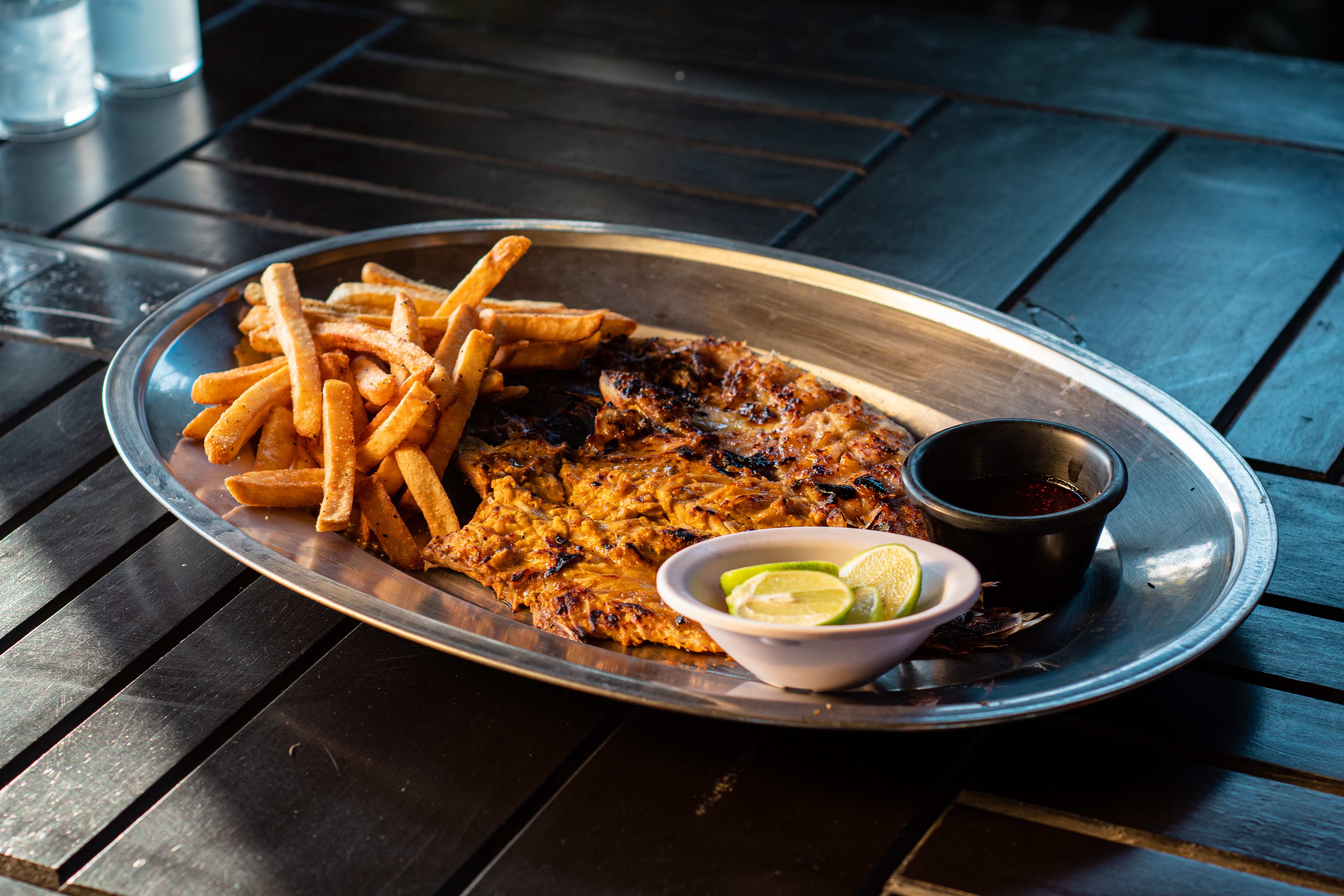 Una de las especialidades dentro de la cocina de Sense es el Pescado a la Talla, que podemos encontrarlo en su presentación tradicional: abierto, untado con salsa a base de especias y chiles y cocinado a las brasas. Sin embargo, Sense ha querido aportar a la gastronomía local su propia versión del Pescado a la Talla que lo hace único en su tipo.