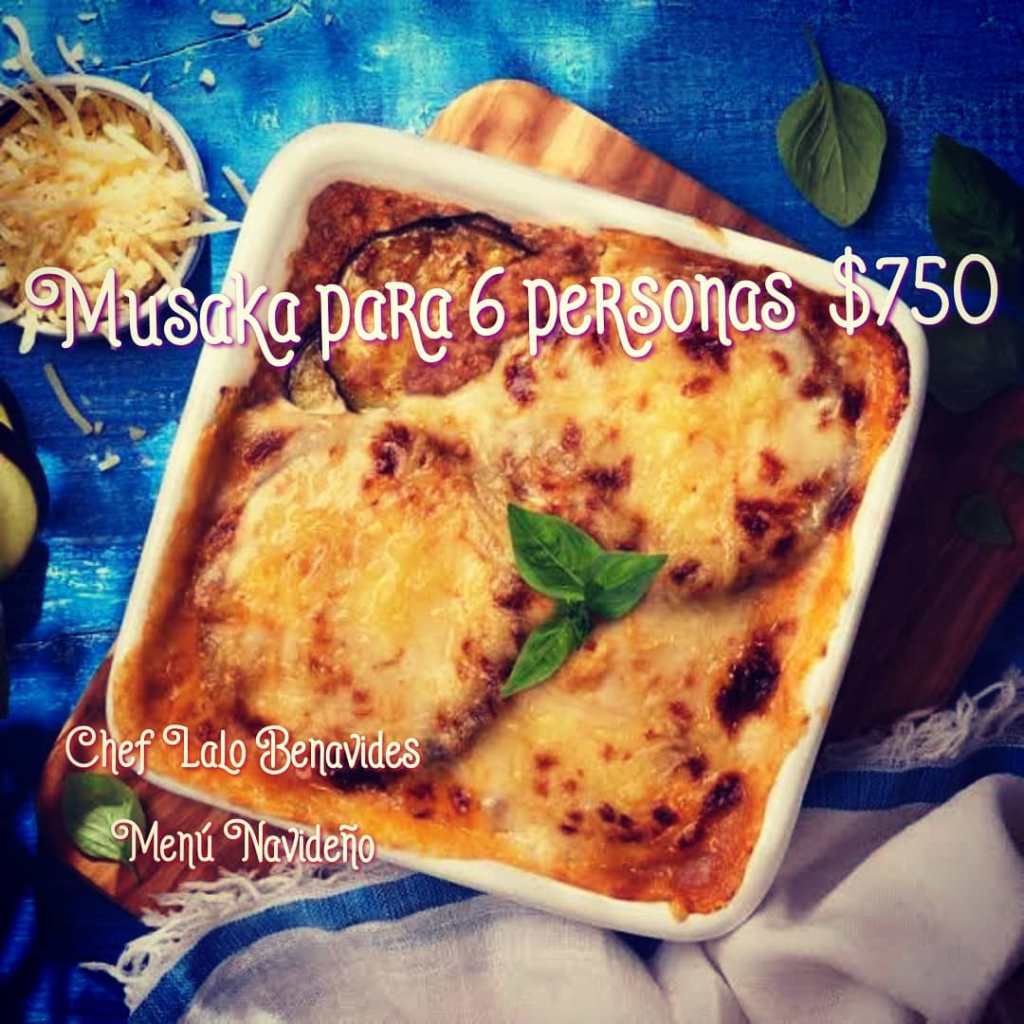 Para la tradicional cena navideña, el chef Lalo Benavides, famoso por sus pizzas originales que muchos llegan a considerar las mejores del puerto, ofrece a todos los comensales su menú especial navideño, el cual consiste de su receta especial de musaka para compartir con nuestros familiares, en esta fecha especial en donde nos unimos más para compartir un rato agradable.