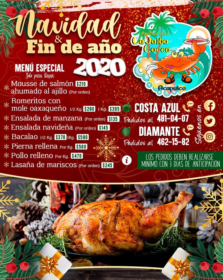 Si los mariscos son una de tus comidas favoritas, La Jaiba Locca ofrecerá un menú especial para llevar en estas fiestas decembrinas, en donde incluye algunas de las especialidades de la casa como el «Mousse de salmón ahumado al ajillo», así como la tradicional «Ensalada de manzana» o la «Pierna rellena», para que disfrutes y degustes con tus seres queridos en estas celebraciones.