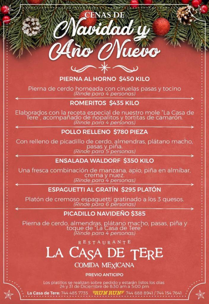 En esta navidad y año nuevo, podrás disfrutar del sabor tradicional que distingue a La Casa de Tere de los demás restaurantes, gracias a su menú especial y variado para estas importantes fechas, en el cual podemos encontrar desde los tradicionales «Romeritos», hasta un exquisito «Picadillo navideño».