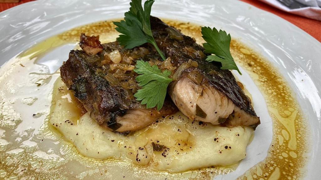 En el plato principal se sirvió la pesca del día, el #CatchOfTheDay, en donde tuvimos un pescado sierra, tradicional de la cocina acapulqueña, preparado con el método culinario francés Meunière, en donde sentimos el sabor exquisito del pescado combinado con la mantequilla y un toque cítrico que le daba al pescado un sabor increíble, con una palatabilidad precisa y balanceada y que el puré de papas intensificaba aún más el sabor cremoso y suave de la mantequilla. Para poder degustar en su totalidad el Meunière del pescado, se nos fue servido pan, el cual fue innevitable bañarlo en la mantequilla que decoraba el plato y disfrutarlo así sin más.