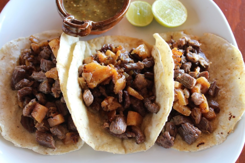 Estos tacos son un «must» o un «debes de» para quien quiera saborear el sabor de la piña y habanero tatemados, con carne de una jugosa arrachera de res.