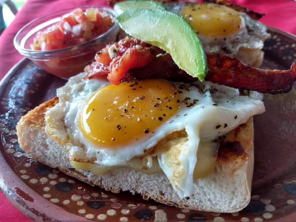 Si planeas comenzar el día con un buen desayuno, los molletes especiales de La Finca, te van a encantar. Se sirven con huevos estrellados sobre un crujiente pan de ajo preparado con frijoles gratinados. Estos se acompañan con tocino y jitomates deshidratados.