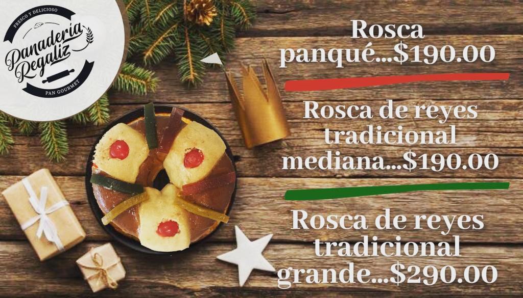 Una rica rosca de reyes gourmet es lo que ofrece la Panadería Regaliz en estos próximos días, para que sus clientes disfruten de una rebanada, mientras conviven con familiares y amigos. Dentro de su menú manejan roscas de distintos tamaños y su también popular rosca de panqué, la cual es de las favoritas para comer en estas fechas.