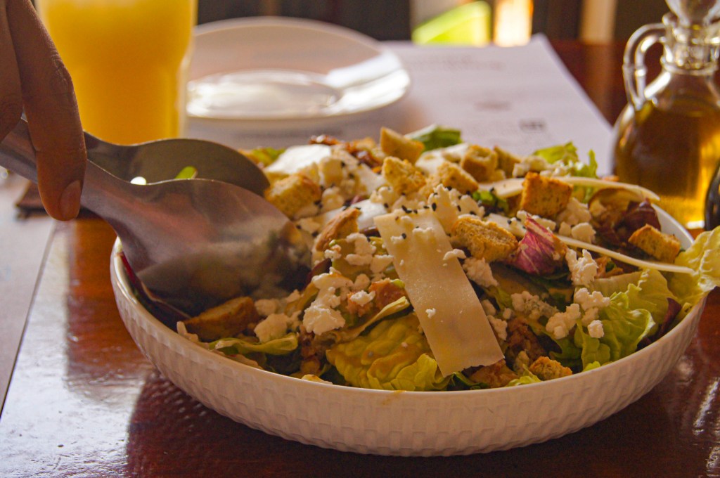 Lo primero que identifiqué en esta ensalada fue la combinación perfecta entre sabores y texturas que hacían a esta ensalada muy única; sabores frescos, caseosos, ligeramente amargos, ácidos y umámicos por el aderezo, mezclados con los crunchy de los crutones y las lechugas, así como la suavidad de los quesos, hicieron que esta ensalada se convirtiera en una experiencia que se podía disfrutar desde el primer bocado, hasta que el encargado de satisfacción retirara el plato.