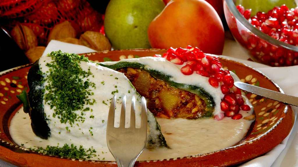 Este platillo se trata de un chile poblano relleno de picadillo de carne y frutas, cubierto con crema de nuez, perejil y granada; una mezcla de sabores salados, agridulces y amargos, combinación que a partir de ingredientes naturales, también evoca a los colores de la bandera de México. Una delicia de la comida mexicana, pero ¿te has preguntado sobre su origen?