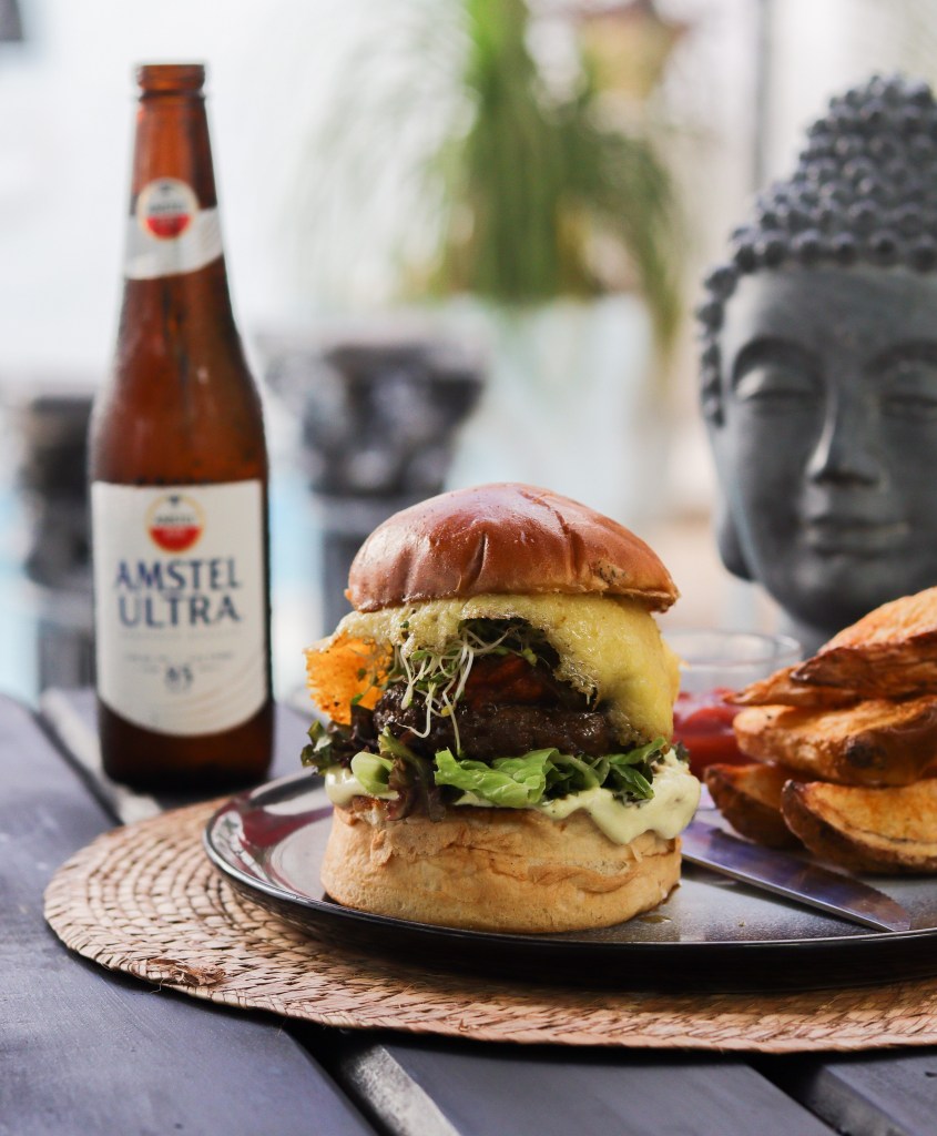 Para continuar, probamos su hamburguesa Nunu´s que es una hamburguesa espectacular, preparada con pan brioche, la carne es una mezcla de res y cerdo, preparada y marinada en casa, lleva un toque de salsa bbq hecha en casa, chimichurri y queso gouda, esta hamburguesa va acompañada de papas gajo y la catsup es preparada por ellos mismos.