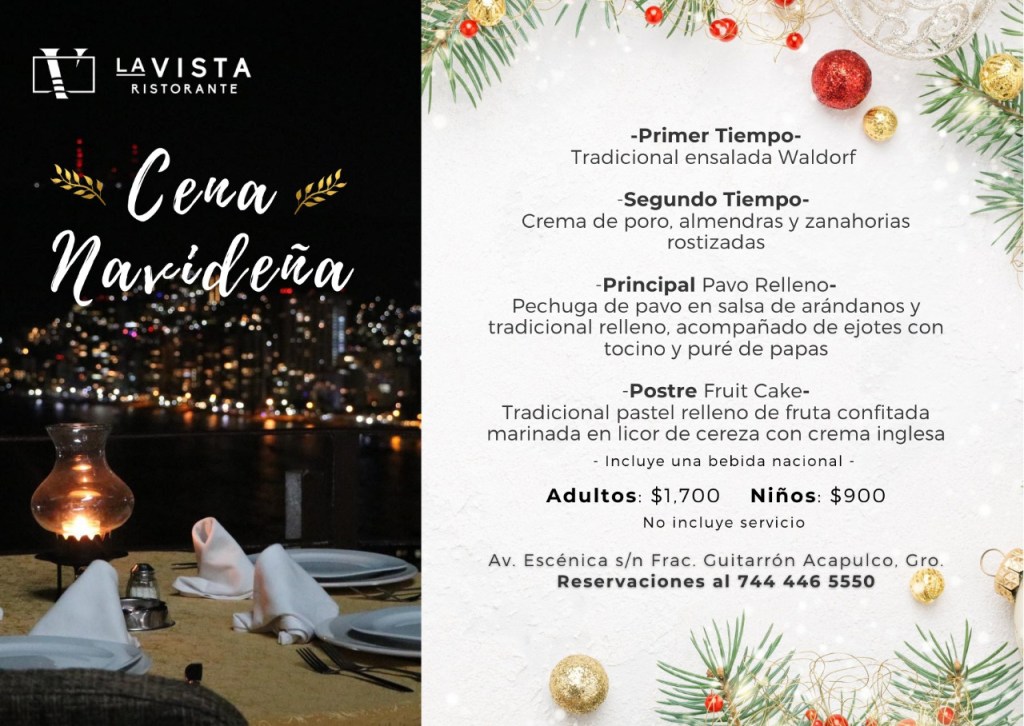 ¿Imaginas tu cena navideña con una espectacular vista de la bahía de Santa Lucía, a la luz de las velas? Esto puede ser posible en La Vista Ristorante, un lugar privilegiado por su ubicación que otorga panorámicas envidiables de gran parte de la bahía. En este bello lugar podrán encontrar un menú de cuatro tiempos, inspirado en los platillos tradicionales de navidad, como la ensalada Waldorf y el pavo.