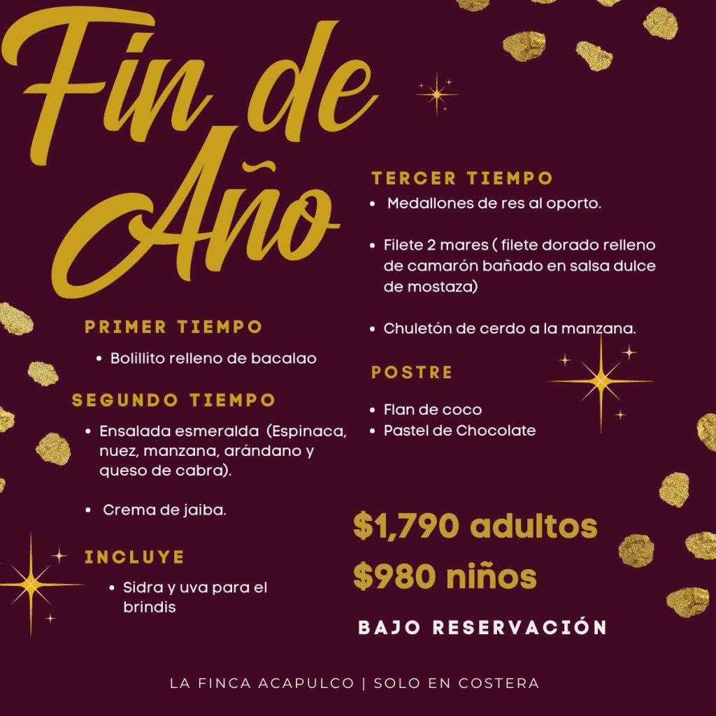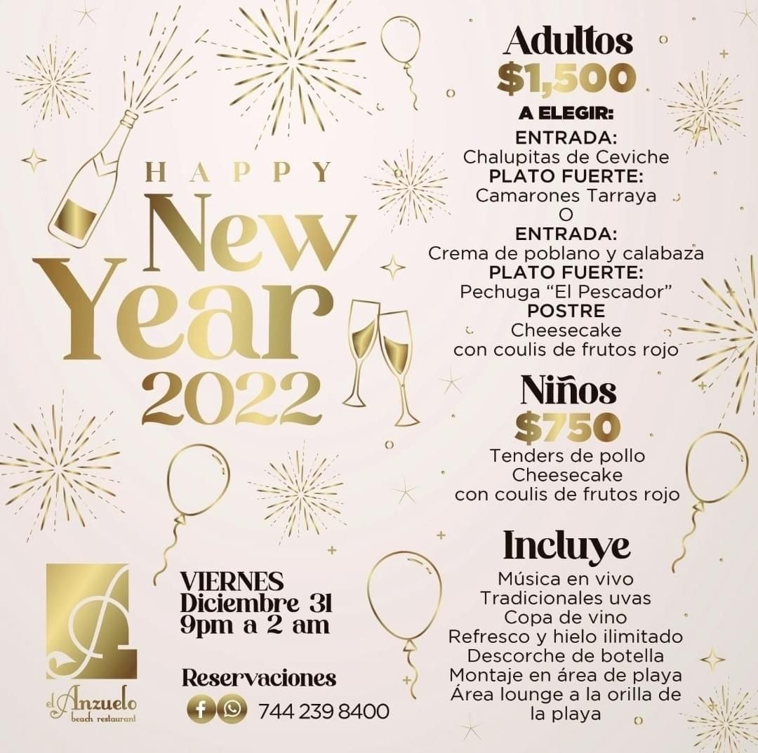 Al ser uno de los lugares más deseados para decirle adiós a la noche vieja, es importante que puedas realizar tu reservación lo más pronto posible, y no te puedas perder la oportunidad de pasar una noche divertida y deliciosa en compañía de los que más quieres. El costo por persona es de $3,500 MXN adultos y $1,300 MXN niños. Puedes realizar tu reservación a los números 744 446 5734 y 744 446 5735.