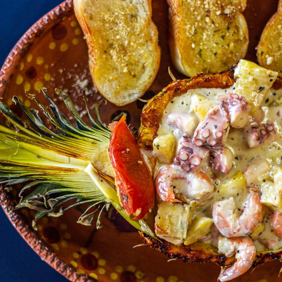 Ya sea una tostada, una ensalada o un ceviche, en La Finca podrás cumplir todos tus antojos sin necesidad de faltar a la abstinencia de la vigilia. Una de sus especialidades dentro de su menú y que es muy popular en estas épocas es su piña caribeña, la cual consta de media piña que se encuentra rellena de mariscos que son gratinados con queso… ¿existe otra opción más deliciosa que puedas encontrar? No lo creo.