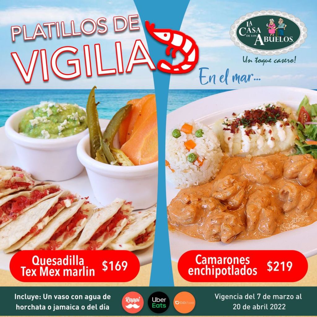 Estos restaurantes que son 100% familiares siempre nos preparan platillos para cada temporada. En esta ocasión, La Casa de los Abuelos ha puesto a disposición de sus clientes dos platillos para entrar en la temporada de vigilia, los cuales son las quesadillas Tex-Mex de marlin y los camarones enchipotlados.