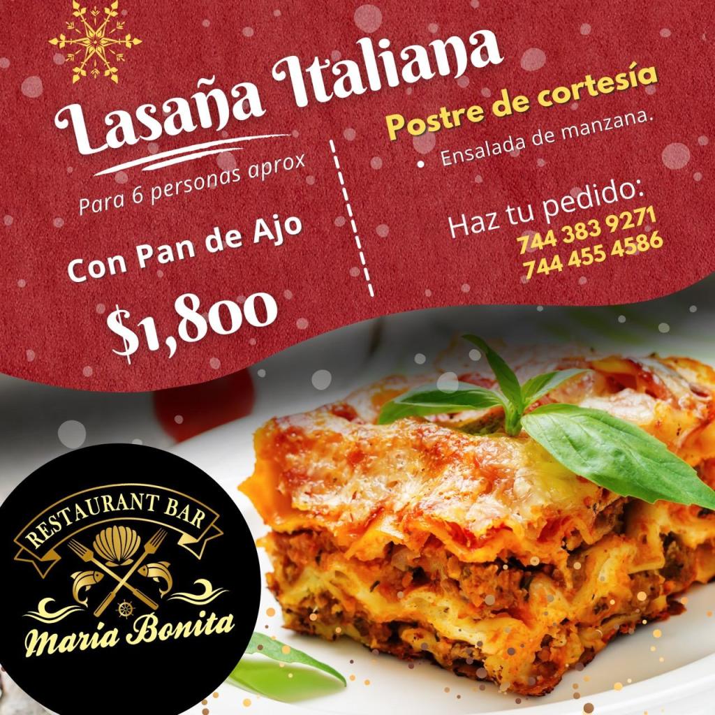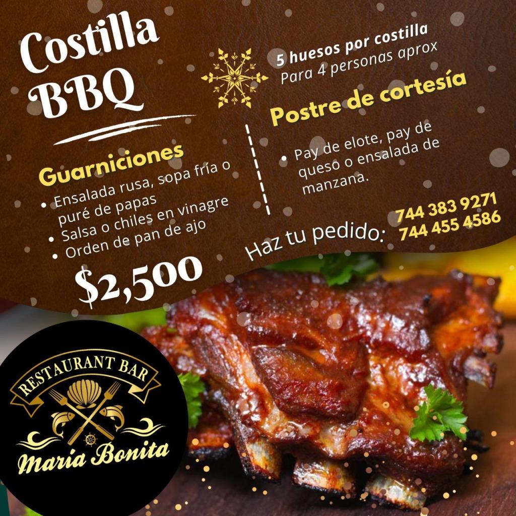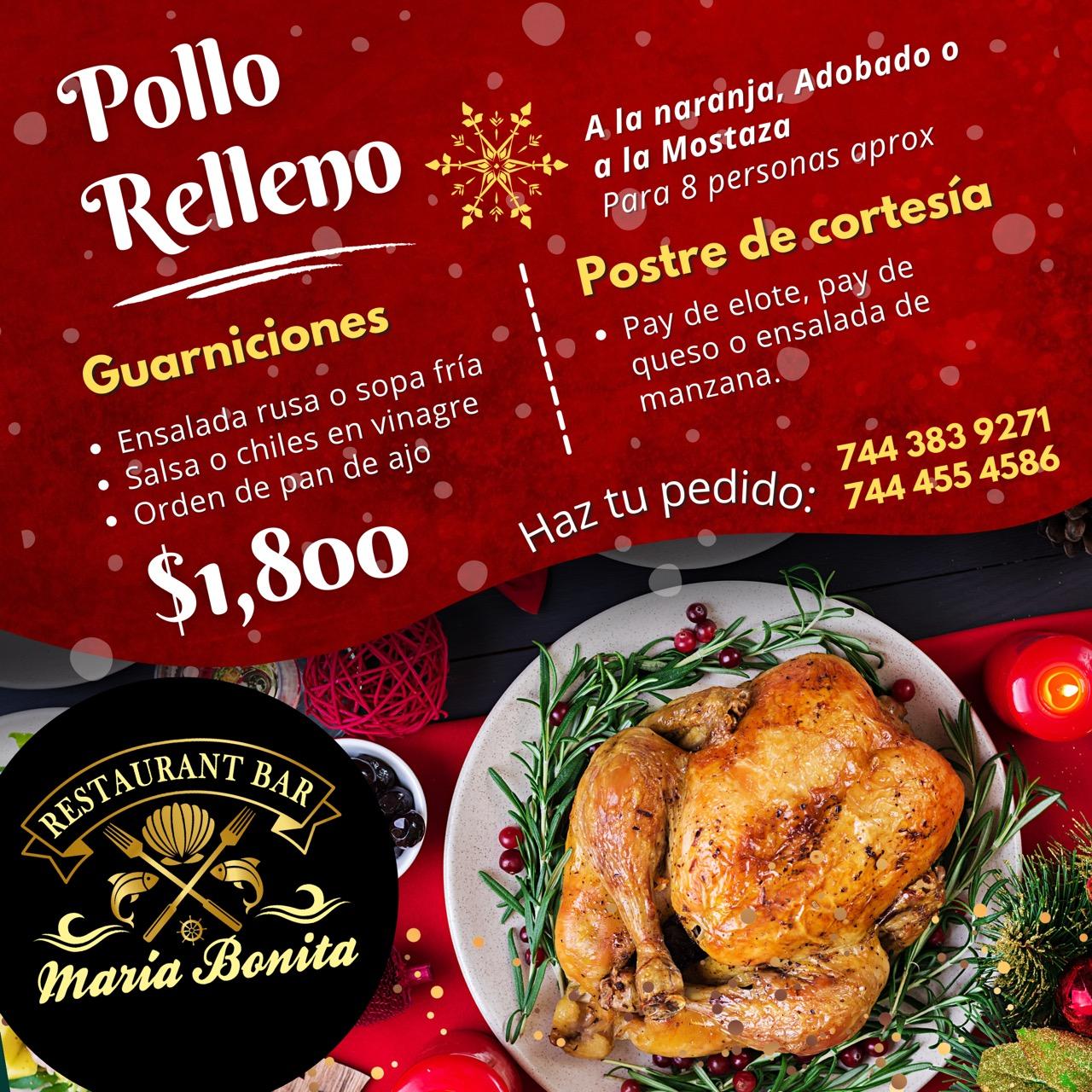 Ubicado en la zona de Llano Largo, el restaurante María Bonita tiene para todos sus comesales diferentes opciones para disfrutar y vivir la Noche Buena y el Año Nuevo sin mayor preocupación. Aquí existen seis diferentes opciones para elegir y disfrutar de ellas en casa; estas opciones pueden ser pavo, pollo, lomo y pierna de cerdo, lasaña y costillas a la BBQ.