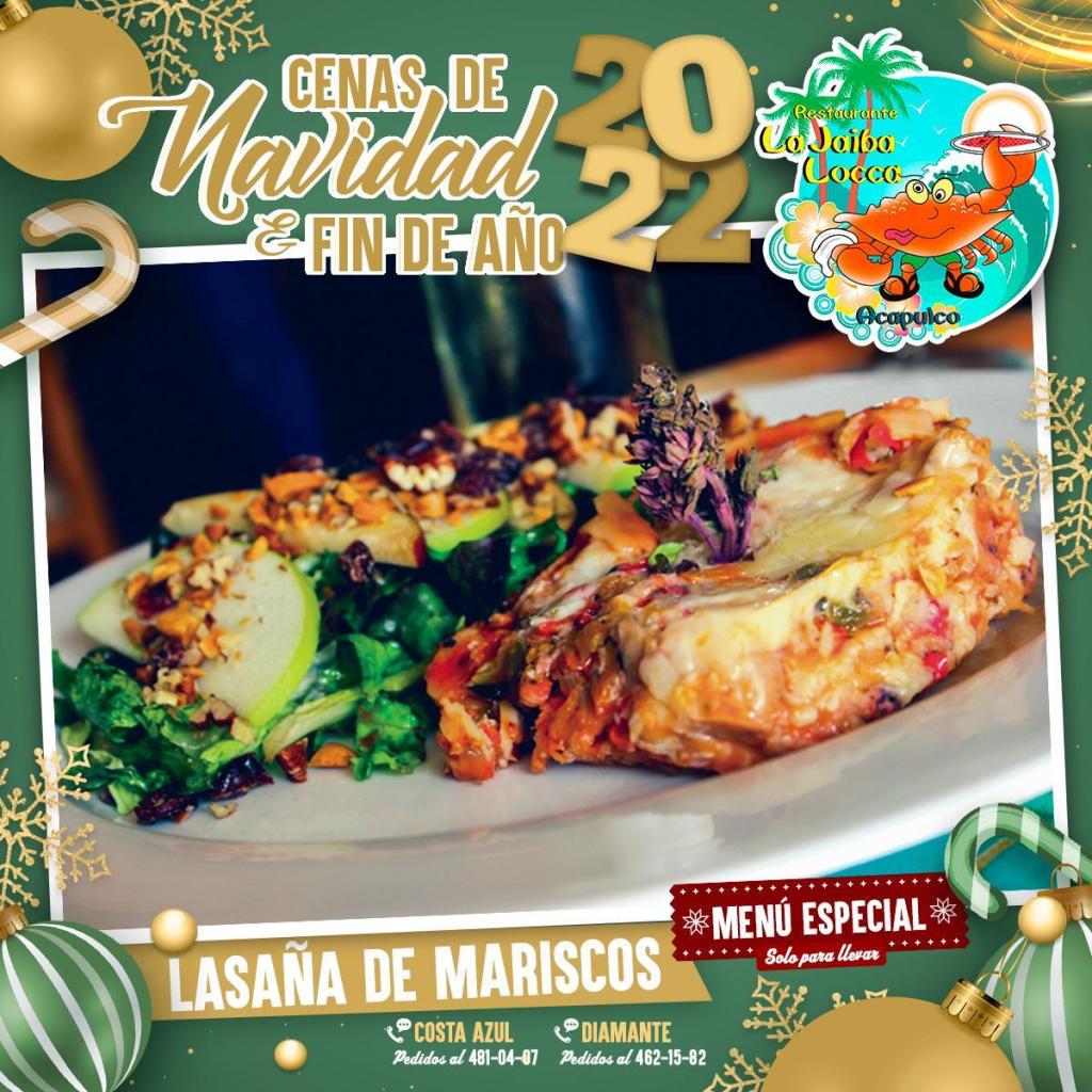 Aquí encontrarán las opciones clásicas de la cena de fin de año, así como una de las especialidades de la casa, la cual es la lasaña de mariscos.