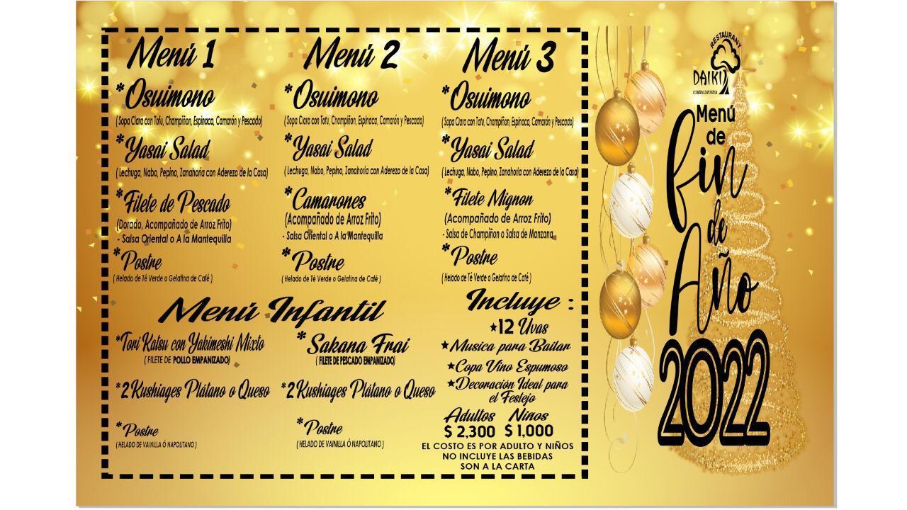 Además de eso, para disfrutar la Noche Vieja, podrán escoger entre tres menús diferentes que está compuestos por cuatro tiempos, los cuales incluyen recetas japonesas que quedan perfectas para disfrutar de esa noche tan especial.