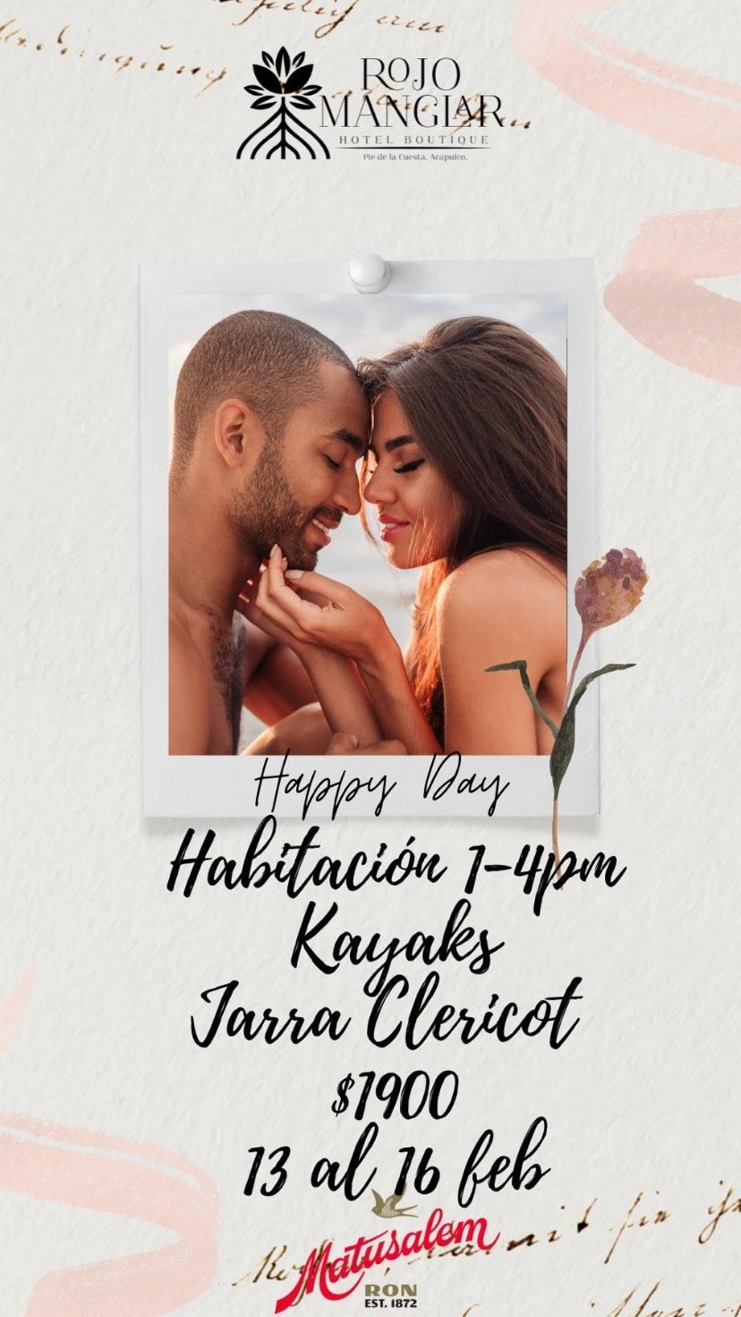 Su paquete Happy Day incluye un paseo en kayaks, una jarra de clericot y, por si fuera poco, una habitación de 1 a 4 PM, para que la comida no sea lo único delicioso que hagan en este día. Así que aprovechen esta promoción que está por tan solo $1,900 MXN y que durará hasta el 16 de febrero de este año, para que no tengan excusa del tiempo o del día.
