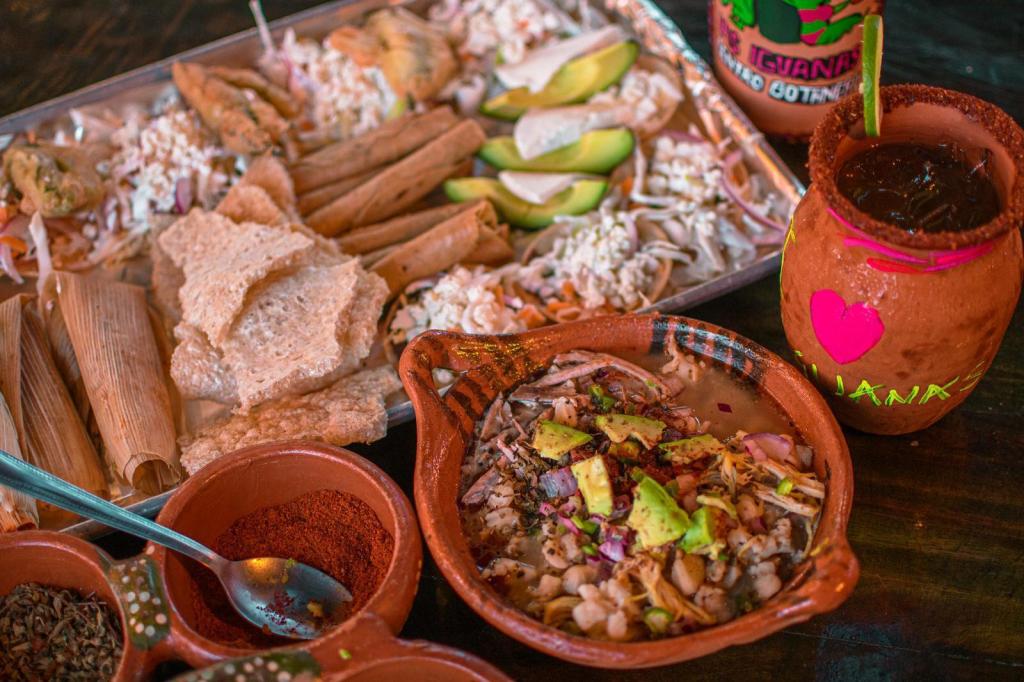 Podrán encontrar caldos, pescados, mariscos, carnes y aves. Si esperan al jueves, podrán disfrutar del jueves pozolero con un show cultural y musical que los dejará encantados; les recomendamos pedir una botana especial para acompañar al pozole, la cual incluirá diversos productos con los que podrán explorar los sabores de la entidad. Además, si lo que buscan es algo fuertecito, podrán encontrar también mezcal de la región, la bebida espirituosa por excelencia que nos caracteriza como guerrerenses.