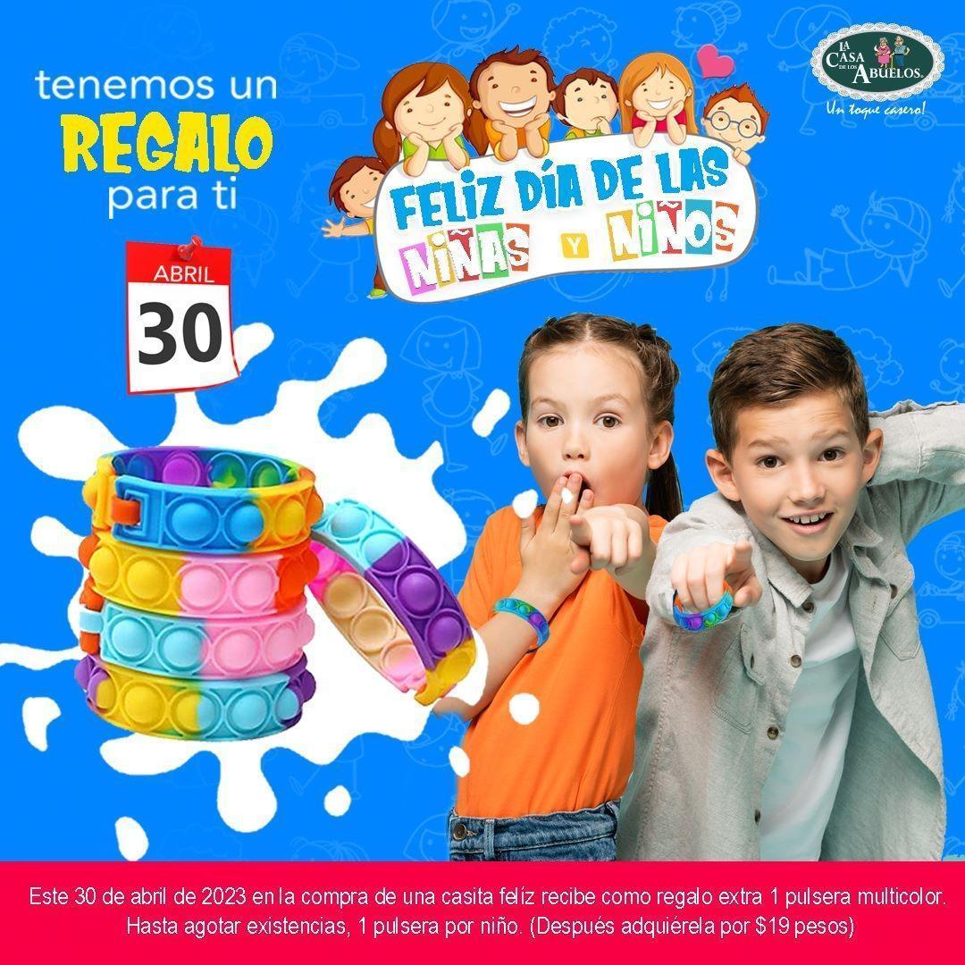 Para este Día del Niño, en La Casa de los Abuelos encontrarán algunas sorpresas durante este 30 de abril. En todas sus sucursales, los niños cuentan con un premio especial, pues en cada compra de una Casita Feliz, tendrán una pulsera multicolor para divertirse.