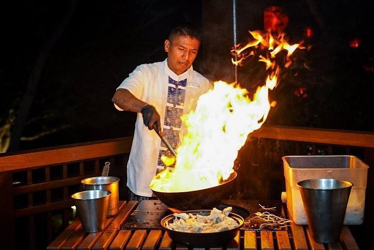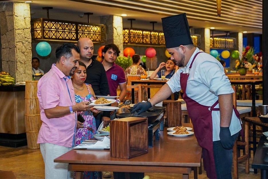 Con una brisa aterciopelada y embriagadora, el festival continuó recibiendo a sus invitados, en medio de un ambiente de fiesta y celebración. Previo a la apertura de las estaciones de comida, el personal del hotel realizó la presentación de los chefs Manuel Morales, Chef Ejecutivo de Banyan Tree Cabo Marqués; Víctor Tufijo, Chef Ejecutivo de Banyan Tree Puebla; la chef Renu Homsombat, Chef Ejecutiva de Banyan Tree Hotels & Resorts; así como también la nueva chef de Cuisine en Saffron, la chef Gook (Tipaporn Phianthon). Cabe mencionar que es la misma chef Renu Homsombat quien se encuentra detrás de toda la propuesta del menú del Thai Fest, por lo que cada año procura presentar elementos nuevos que permitan sorprender y deleitar a los invitados, propiciando una sorpresa deliciosa que es palpable y más elevada en cada emisión del festival.