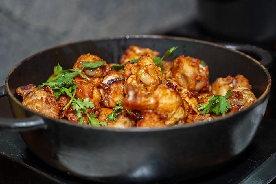 Posteriormente, avanzamos y nos encontramos con la estación de alimentos fríos, en donde se encontraba el Som Tam, o sea, la ensalada de papaya verde con camarones, así como el calamar parrillado con aderezo de lime chilli y, por su puesto, los icónicos rollos primavera rellenos de hierbabuena. Dentro de estos platillos pudimos reafirmar no solo la fineza y peculiaridad de la cocina thai, sino también de lo tan bien ejecutado que estaba, y lo decimos poniendo especial atención en el calamar; si bien el calamar es un elemento muy popular dentro de la cocina de Asia, si este no cuenta con la preparación adecuada, puede resultar en una experiencia desastrosa, sin embargo, el calamar parrillado de esta estación, se encontró suave y muy consistente, fácil de morder, masticar y deglutar, con mucho sabor dentro de sí y con una combinación de texturas, especialmente el crunchy que lo acompañaba.