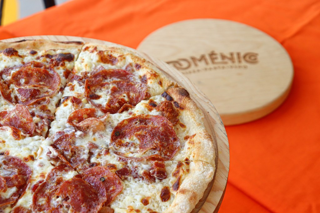 Y, finalmente, llegamos al clímax de nuestra experiencia culinaria en este restaurante: la Pizza Doménico, un plato emblemático que refleja mucha innovación. En lugar de la tradicional salsa de tomate, esta pizza se atreve a presentar la audaz y deliciosa salsa caccio e pepe. Esta elección añade una dimensión completamente nueva a la pizza y, con la adición de salami y tocino, se crea un sabor que es sencillamente inolvidable. La combinación de los sabores intensos y la sorprendente elección de la salsa hacen de esta pizza un verdadero deleite al cual queremos invitarlos a sentir en primera persona.