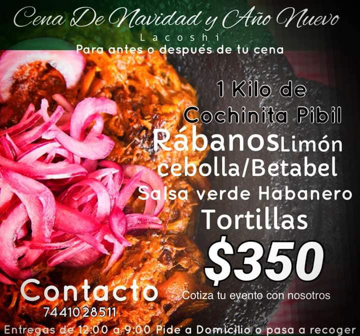 Si lo que desean en tener una cena más relajada y llena de sabor, La Coshi trae para ustedes la posibilidad de cenar tanto en Navidad como en Año nuevo cochinita pibil. Ustedes pueden pedir un kilo de cochinita, complementos y tortillas por solo $350 MX.