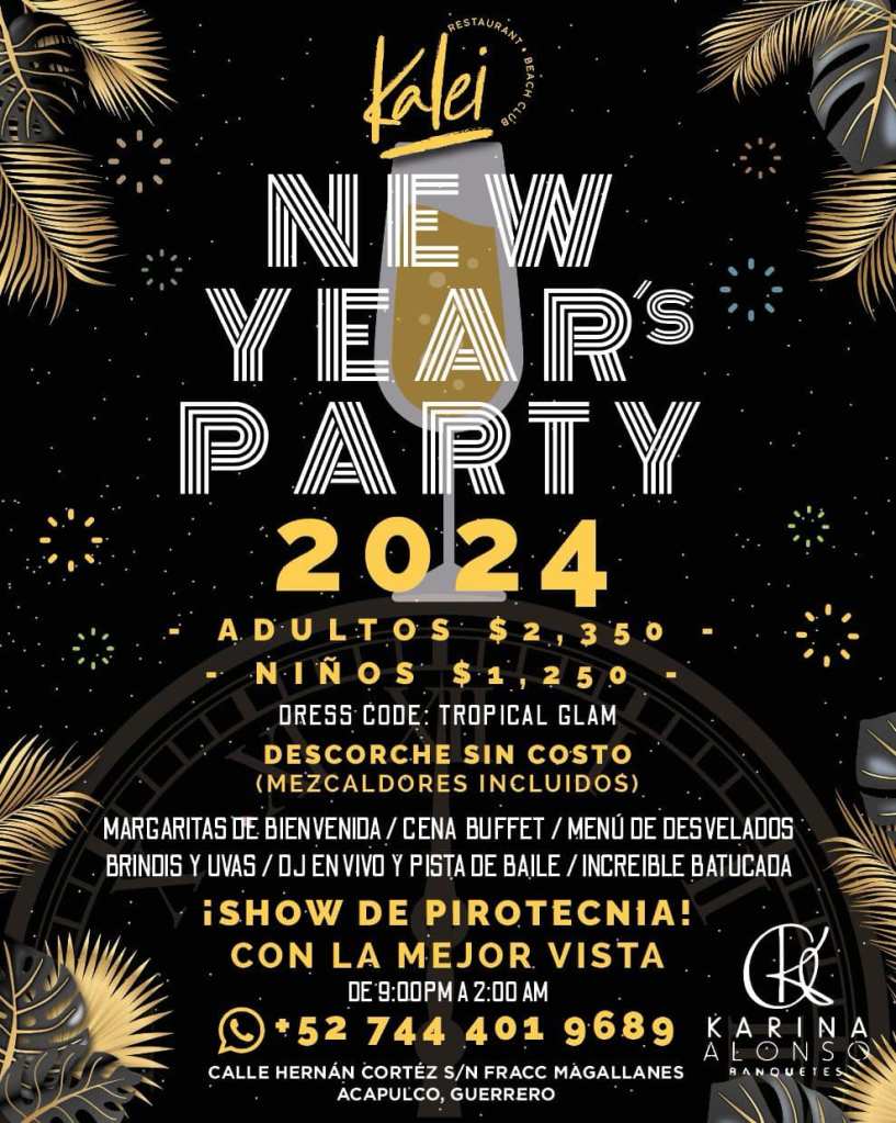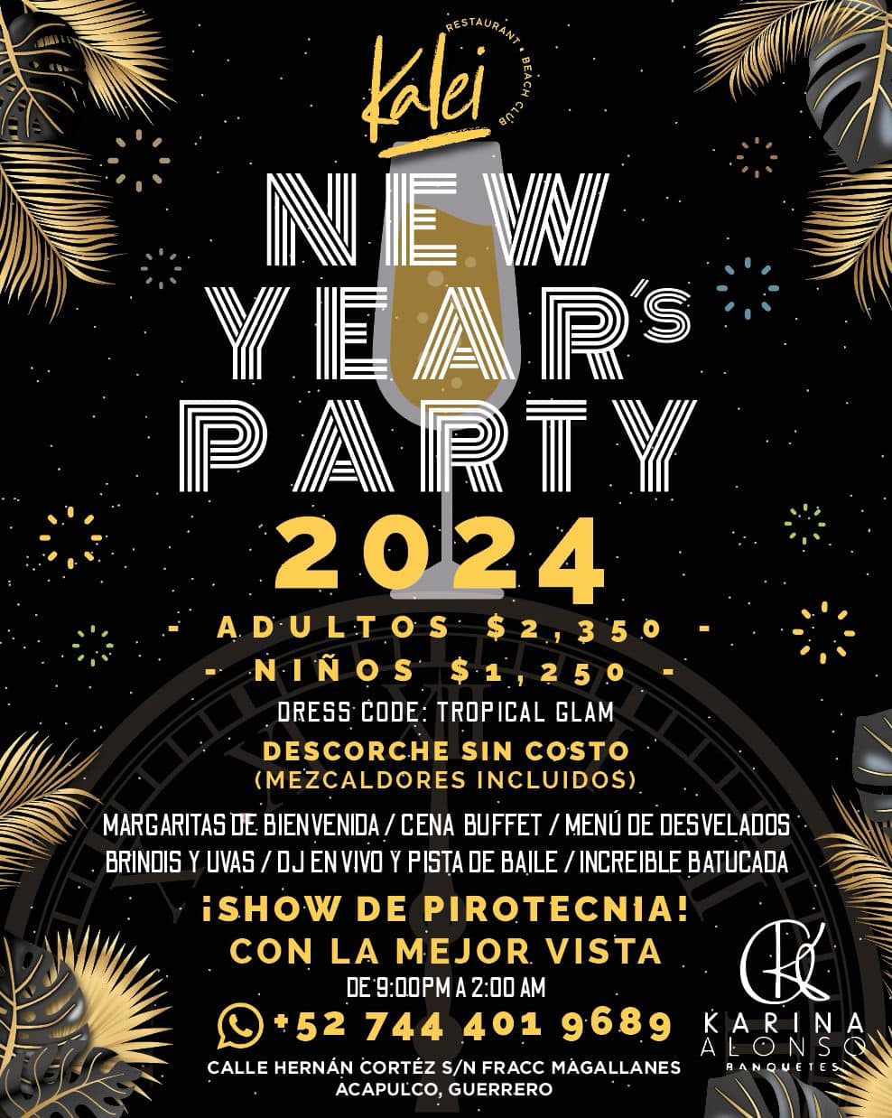 En Kalei podrán vivir al máximo una noche divertida para decirle ¡hola! al 2024. Además de contar con un DJ en vivo para pasarla delicioso e increíble, Kalei contará con una cena buffet, un menú para comer pasada las 12 de la noche, unas margaritas de bienvenida y una vista impresionante.
