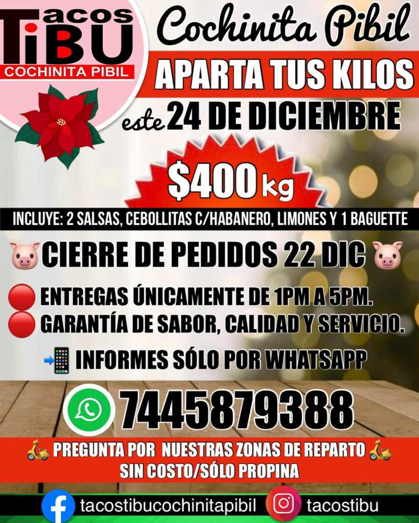¿Algo tranquilo para esta Navidad? Pues Tacos Tubi tiene para ustedes la posibilidad de degustar tacos de cochinita para este 24 de diciembre. Por $400 MXN, pueden tener un kilo, limones, cebollitas con betabel y un baguette.
