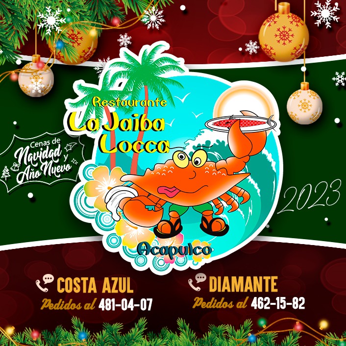 Uno de los clásicos en las cenas de Navidad y Año Nuevo, es la Jaiba Locca. En este restaurante, ya sea en el de Costa Azul o en el de Diamante, podrán reservar sus cenas para llevar y disfrutar en la comodidad de sus hogares.