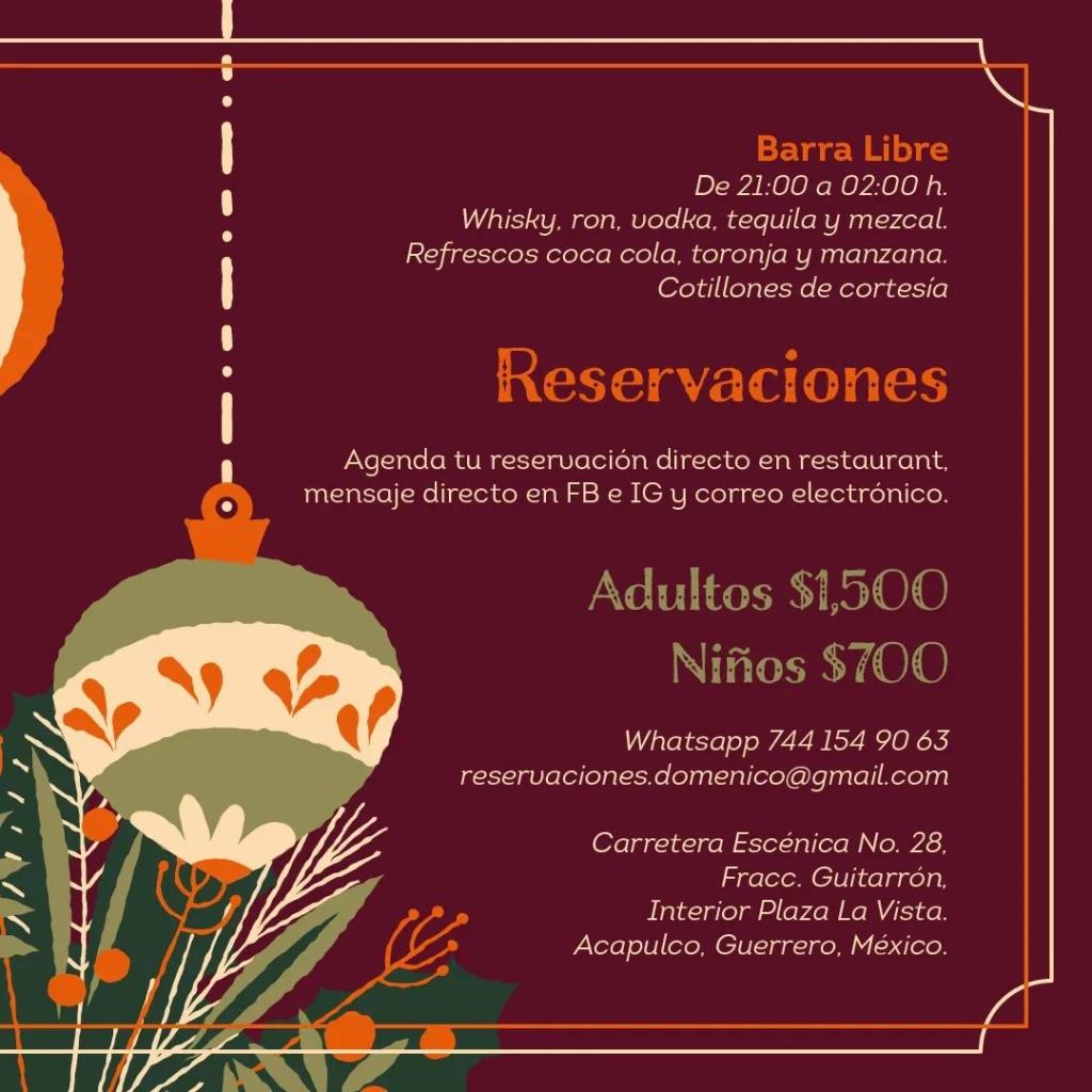 Por esto, algunos restaurantes en Acapulco ya han comenzado a ofertar desde cenas para llevar, hasta la oportunidad de vivir la experiencia de celebrar con los que más aman la llegada del Niño Jesús o recibir el año 2024 en grande, por lo que aquí les tenemos las mejores recomendaciones para reservar en este 24 y 31 de diciembre.