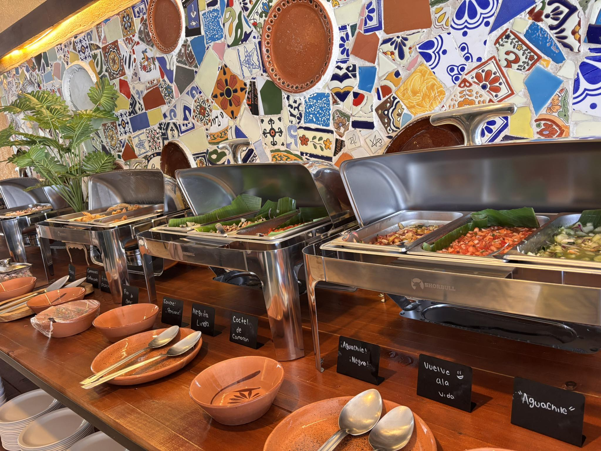 Pocos placeres como comer frente al mar. En La Terraza, además del panorama perfecto, te espera un buffet con productos del mar preparados con cuidado, además de algunos cortes y platillos clásicos para quienes no quieren mariscos. El ambiente es relajado pero elegante, con música suave y atención de calidad. Si puedes, ve al atardecer. La luz, el mar y una copa fría hacen de cualquier comida una experiencia memorable.