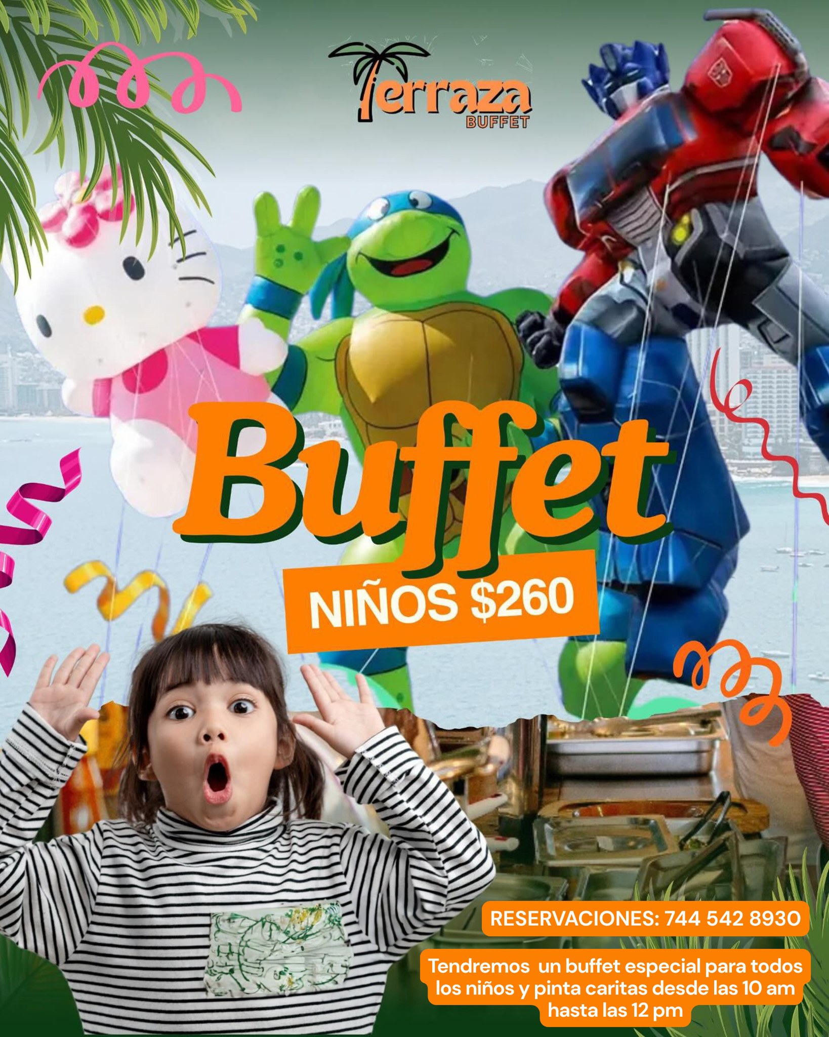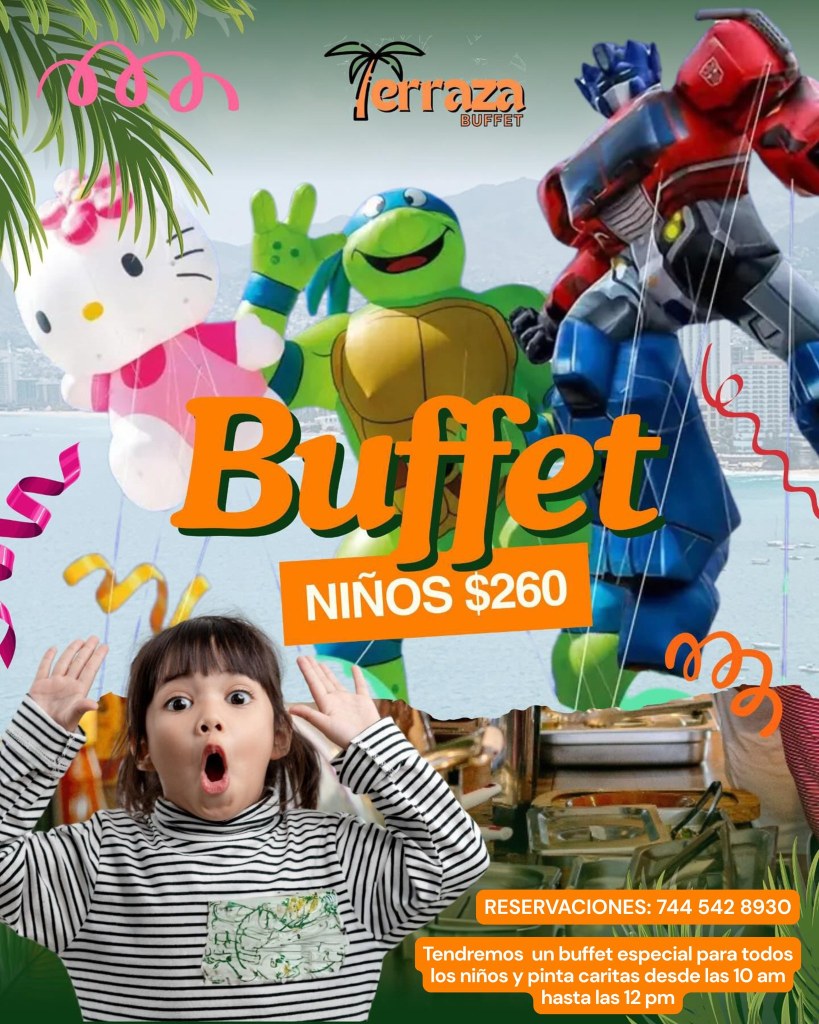 Para los pequeños de gran apetito, La Terraza Buffet será un paraíso. Desde las 10:00 AM hasta las 12:00 PM, tendrán un buffet especial para niños, acompañado de una divertida sesión de pintacaritas.