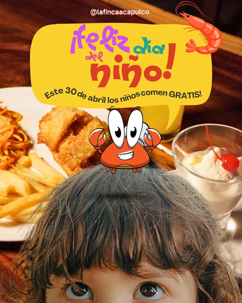 En La Finca Acapulco hay un motivo más para sonreír este 30 de abril: los niños comen gratis (aunque aplica restricciones, así que vale la pena preguntar detalles al llegar). La Finca, conocida por su cocina mexicana de tradición, se convierte en un espacio ideal para reunir a la familia, disfrutar de sus clásicos de siempre y ver a los pequeños felices de ser los protagonistas del día.