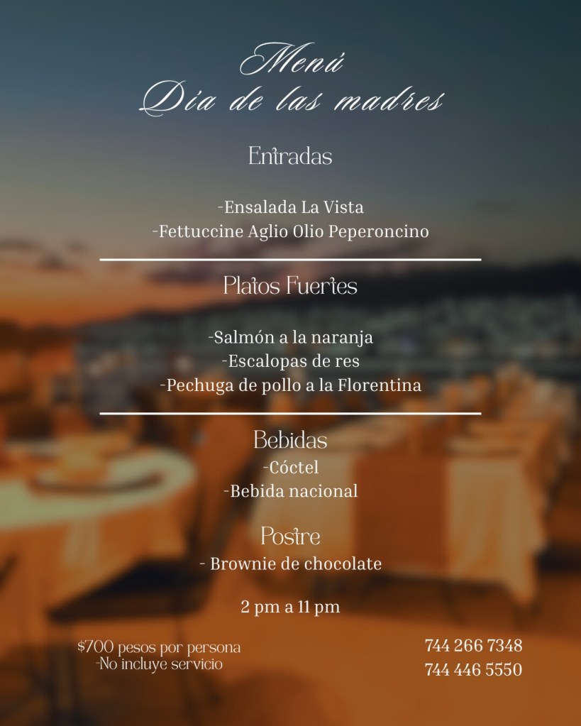 En Acapulco, varios restaurantes se suman a esta celebración con propuestas que combinan sabores, detalles especiales y ambientes pensados para que mamá sea la protagonista. Desde buffets generosos hasta cocteles de cortesía y música en vivo, aquí te dejamos una selección de lugares donde el 10 de mayo puede convertirse en un momento para recordar.